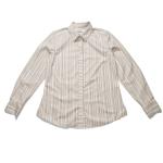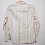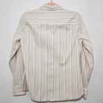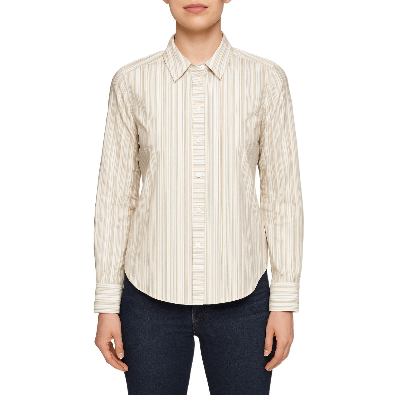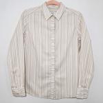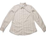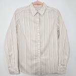 This Foxcroft Women’s Non-Iron Stripe Long Sleeve Stretch Cotton Shirt (Size 6) offers a polished look with easy-care convenience. Designed in cream and tan vertical stripes, this blouse combines timeless tailoring with wrinkle-resistant technology.