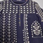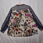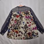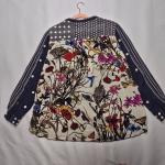 Design: Floral embroidered back with coordinating front and sleeve patterns