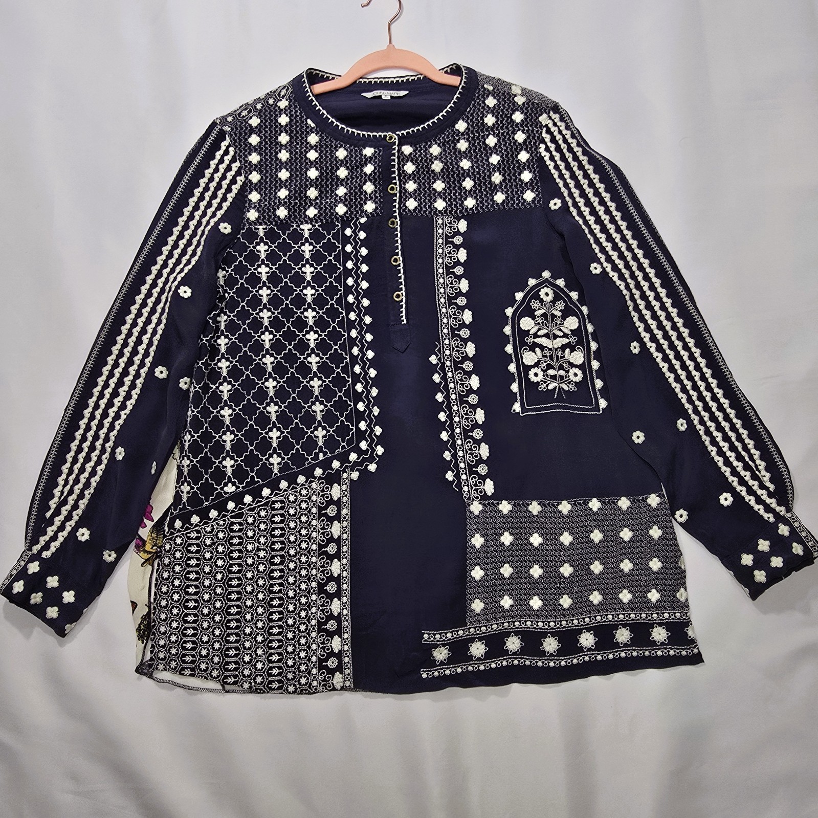 John Mark Women's Floral Embroidered Back Detail Long Sleeve Top S