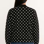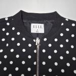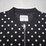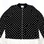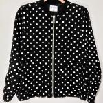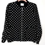 ELLE Womens Black White Polka Dot Bomber Jacket Medium Full Zip Pockets Lined
