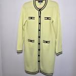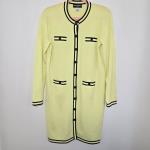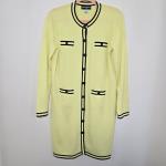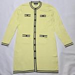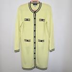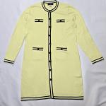 This Karl Lagerfeld Paris sweater day dress combines modern sophistication with a flattering knit silhouette. The piece features a vivid neon green body accented with black trim, giving it a signature Karl Lagerfeld Paris look, refined yet bold.