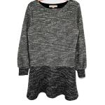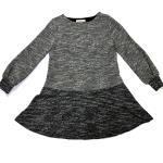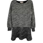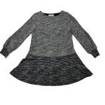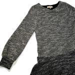 This LOFT women's long sleeve sweater dress combines comfort and style. Made from 66% polyester, 19% cotton, and 15% acrylic, it features a lighter gray body with a darker tone skirt creating a subtle tweed effect. The fit & flare design offers a flattering and comfortable silhouette.