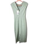 ZARA Women’s Green Sleeveless Pleated Waist Midi Dress Size S NWT