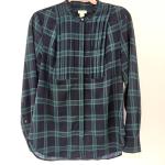 J.Crew Factory Women’s Navy Green Plaid Pleated Front Button Down Shirt Size S