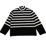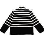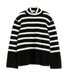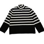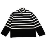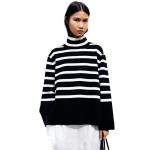Stylish and versatile striped turtleneck sweater from H&M, crafted in a soft fine knit fabric. Features a classic black and ivory color combination, long sleeves, and a straight hem with side slits for a comfortable regular fit. Perfect for casual or office wear during cooler seasons.