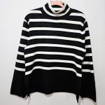 H&M Women’s Striped Turtleneck Sweater Black Ivory Fine Knit Size M