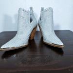 Gianni Bini Jeweled Silver Glitter Cowboy Booties Women’s 8 M Western Heels